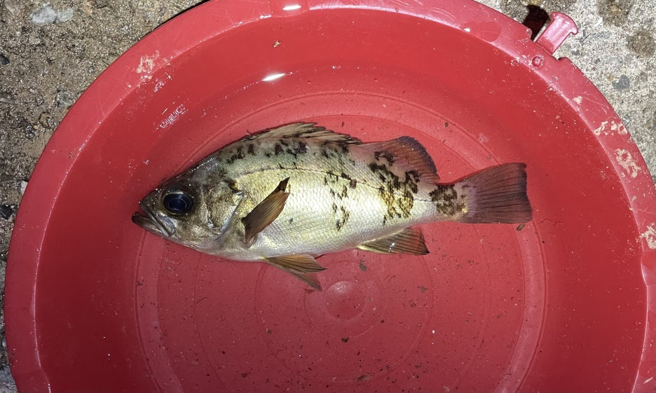 가장 먼저 반응해준 건 볼락이었습니다. 방파제 불빛 근처에 캐스팅했더니 꺽지처럼 툭 치고 물고 가더라구요. UL 장비라 손맛도 제법 짜릿했습니다.