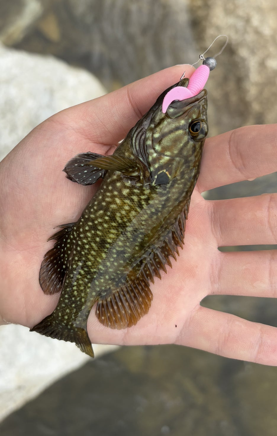 무거운 지그헤드로 바닥을 박박긁었을때 반응한 꺽지들